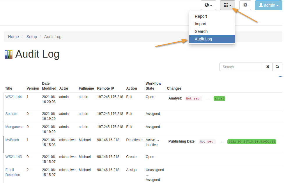 Global audit log in Bika Open Source LIMS