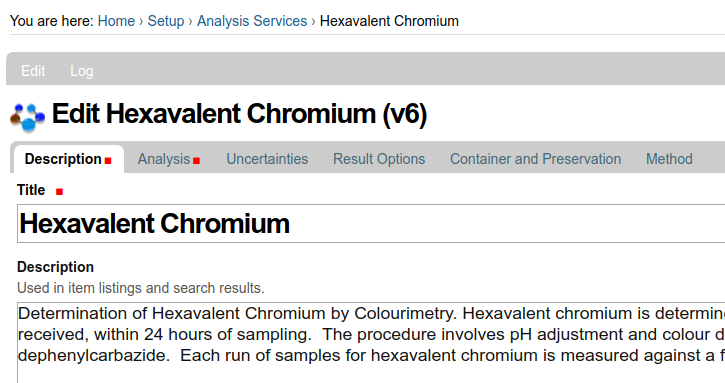 Analysis Service Description tab in Open Source LIMS Bika and Senaite