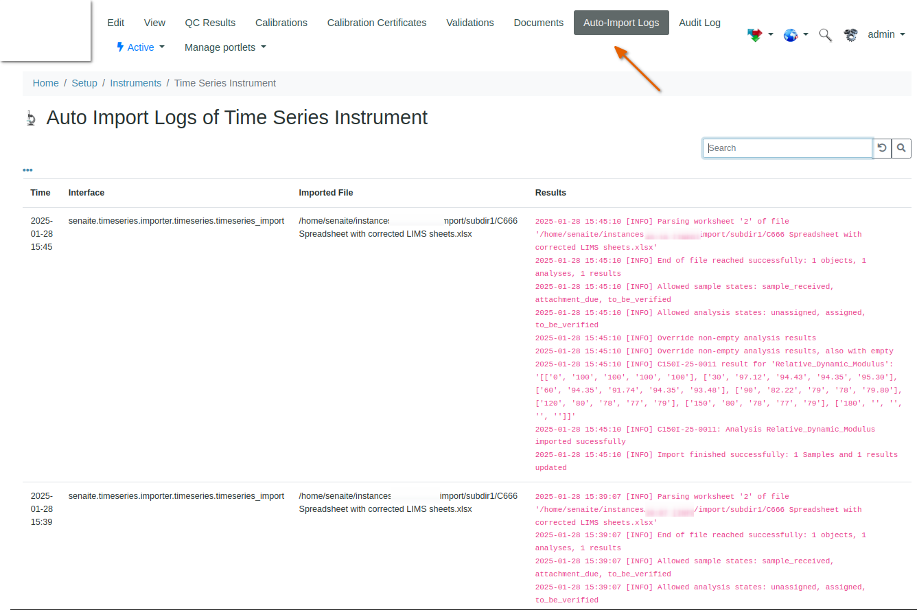 Auto Time Series importer log in Bika Open Source LIMS
