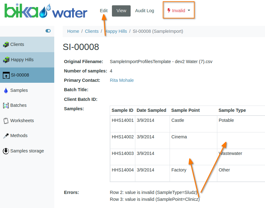 AR Import upload  screen. Import. Bika LIMS Senaite