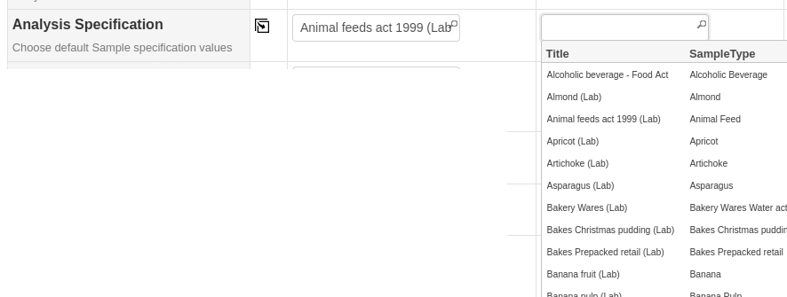 Analysis Specification selection on the Sample registration form in Bika Open Source LIMS