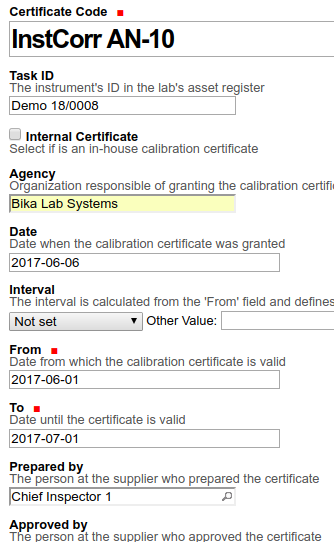Instrument Calibration Certificate in Bika Open Source LIMS