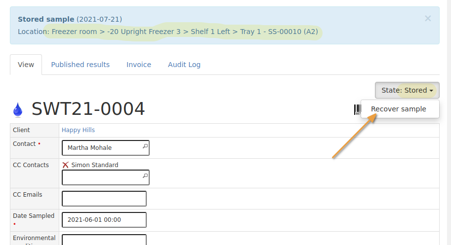 Retrieve Samples from storage on it's view in Bika Open Source LIMS