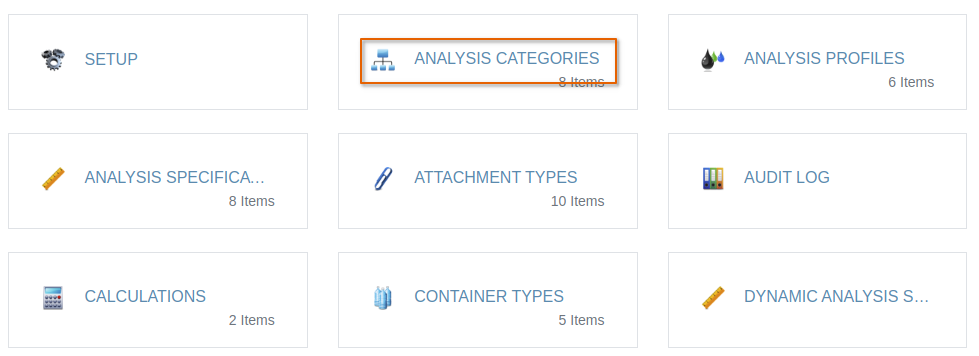 Select Analysis Categories in the Vika Open Source LIMS setup