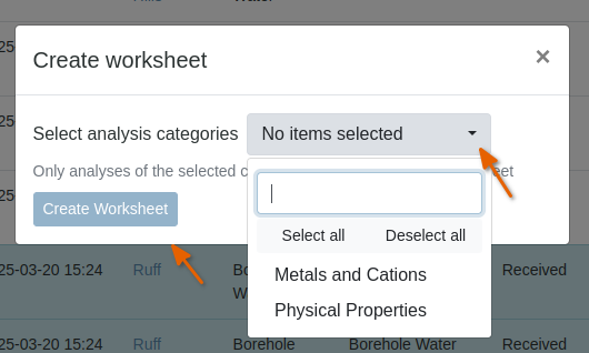 Select Analysis Category for Worksheet in Bika Open Source LIMS