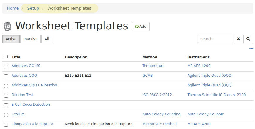 Instrument Selection on Worksheet Template (Bika Senaite)
