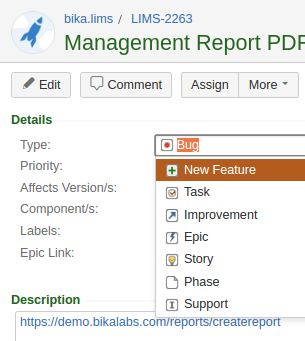 Bika Open Source LIMS Issue Types